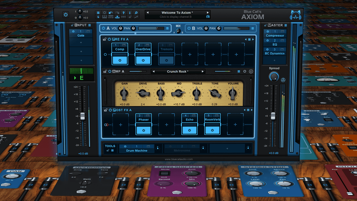 Blue Cat's Axiom is a versatile and robust software for guitar and bass, designed for both amp simulation and multi-effects processing. Drawing from the success of the well-regarded Destructor plug-in, Axiom provides a virtually endless range of superior sounds for your instrument.