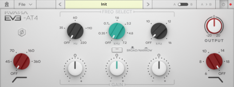 - Approximately +/-18dB (Narrow Q), and +/-12 dB (Broad Q).